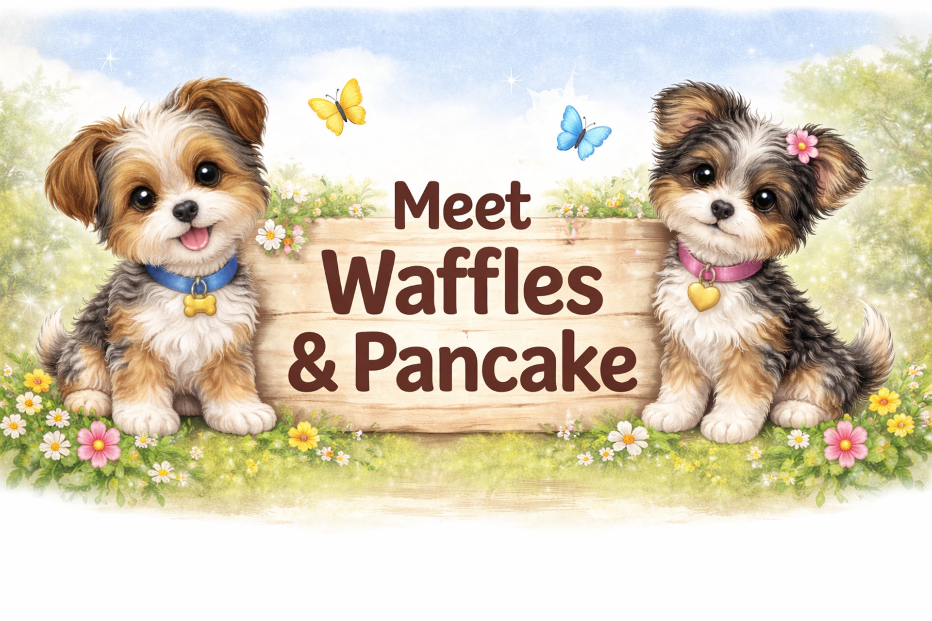 Waffles and Pancake were inspired by real dogs who are part of our family. Waffles is just like the playful pup in the stories, full of energy and curiosity.